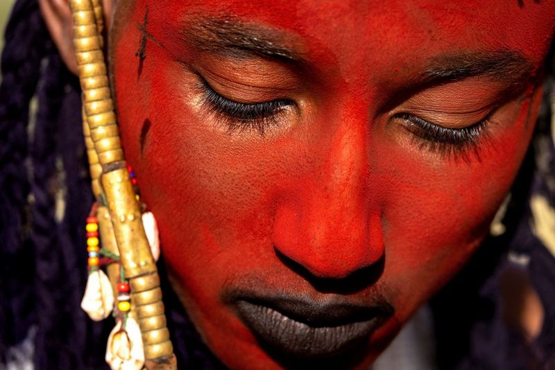 Canon Ambassador and documentary photographer Pascal Maitre took this photograph in Niger, West Africa during a Guérewol ceremony, an annual courtship ritual where young Wodaabe women judge the stamina and attractiveness of young Wodaabe men. The Wodaabe people belong to the Fulani ethnic group and are traditionally cattle herders and traders. Taken on a Canon EOS R5 with a Canon RF 28-70mm F2L USM lens at 70mm, 1/400 sec, f/6.3 and ISO400. © Pascal Maitre