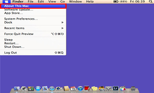 2. From the Apple menu that appears click [About This Mac] (highlighted in red).