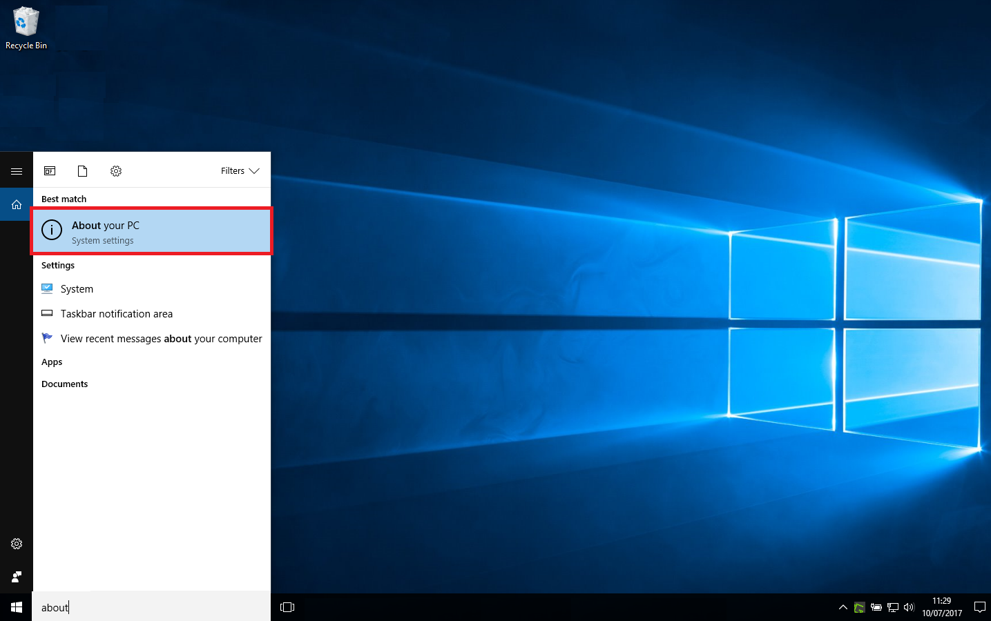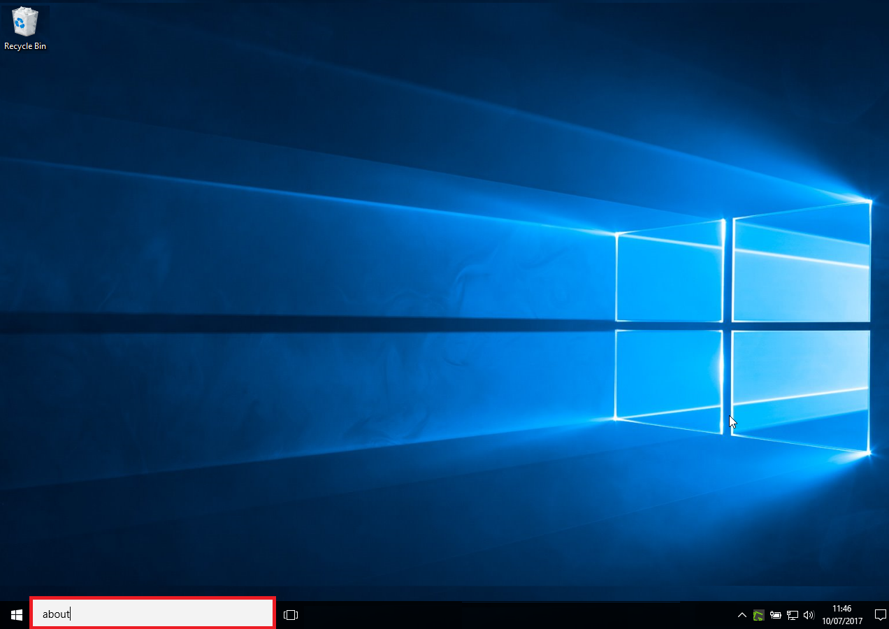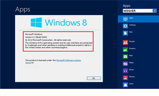 1.When on the home screen start typing the word WINVER and you will see a search bar appears from the right of the screen.