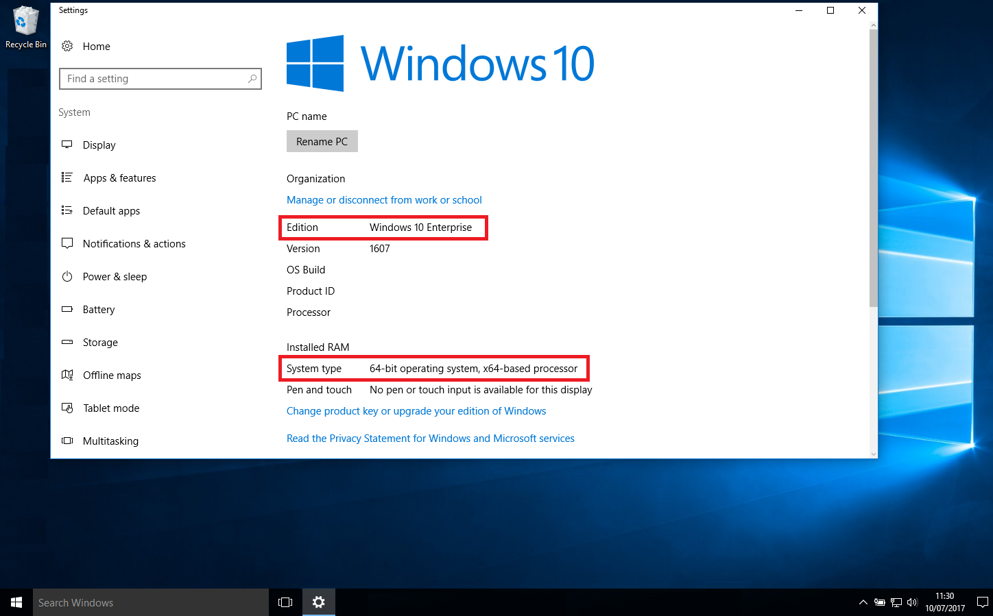 3. When the information window appears the ‘Edition’ field will show you what version of Windows is running and the 'System type' field will show you if it is a 32 or 64 bit version.