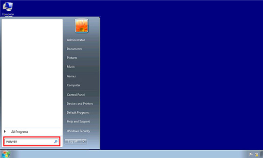 2. When the menu appears click in the empty search box (highlighted in red) and type the word WINVER, then press the [enter/return] key.