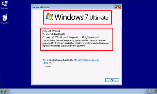 3. An information box will appear containing details of the operating system that is running on this machine.