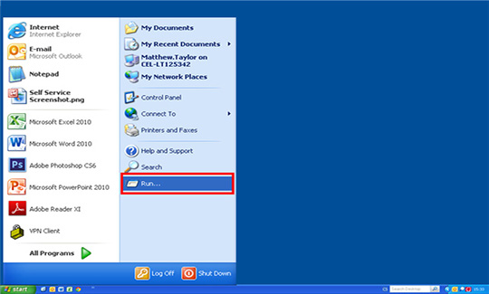 2. From the menu that appears click on [Run…] (highlighted in red).
